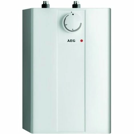 AEG Kleinspeicher, 5 Liter Inhalt mit Mischarmatur. Korrosionsfester Innenbehälter aus Polypropylen. Außenmantel weißer Kunststoff, Wärmedämmung aus Polyurethan-Hartschaum. Temperaturwählregler stufenlos von ca. 35 °C bis 85 °C einstellbar. Energiesparstellung bei ?e? = 60 °C und ?E? = 40 °C. Begrenzung und Blockierung des Wählbereichs. Rücksetzbarer Sicherheitstemperaturbegrenzer = STB, Übertemperaturschutz und Signallampe. Separater Wandbügel. Anschlussleitung ca. 0,5 m mit Schutzkontakt-Winkelstecker. Qualitäts- und Sicherheitszeichen: CE-Zeichen, VDE-/ GS-Zeichen, Funkschutzzeichen / EMV.